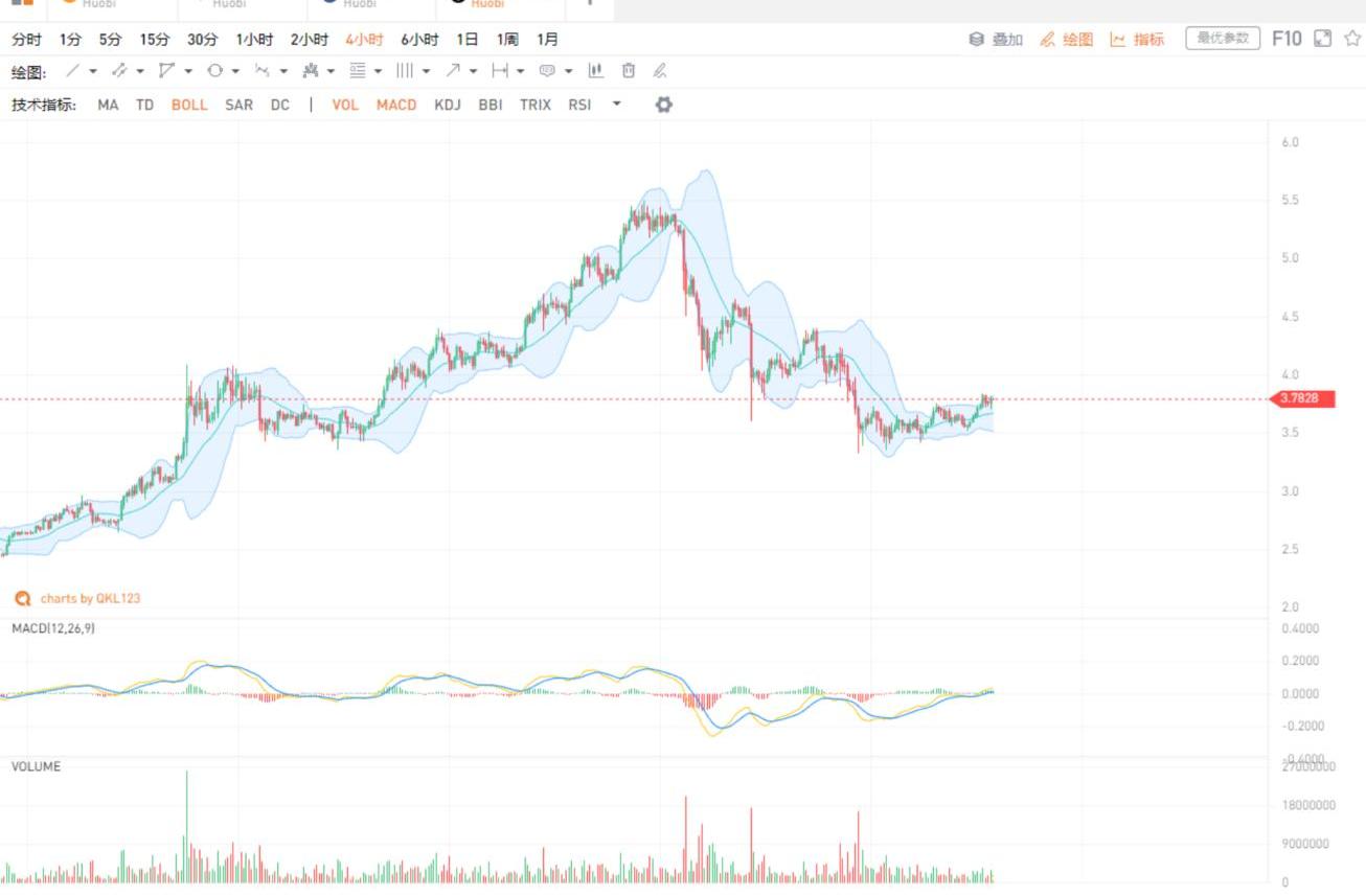 EOS走势与BTC类似,站上前几日反弹高点,有助于大盘继续反弹。
