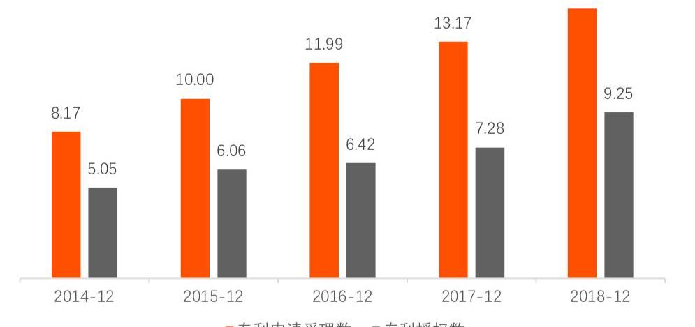 从专利数量来看,上海市专利申请数量和专利授权数都在平稳增长。2018年,上海专利申请数量达到15.02万件,较2017年增长14.04%,5年间复合年均增长率为12.97%,专利授权数量为9.25万件,较2017年增长27%,5年间复合年均增长率为12.86%。