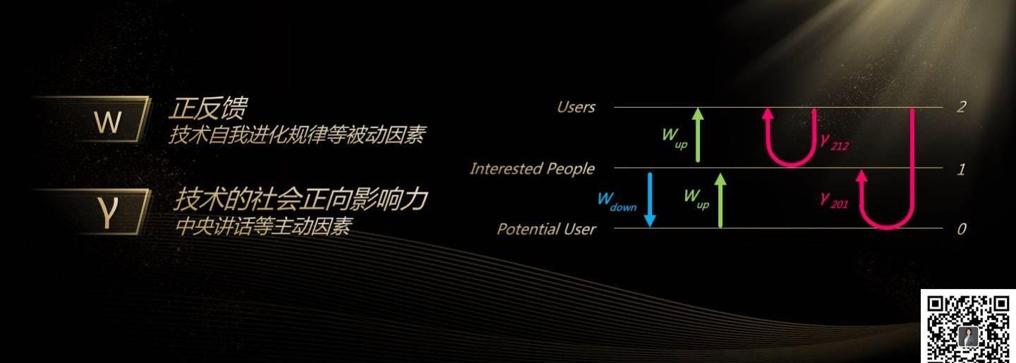 玲听2020跨年演讲中有一个模型,其中γ代表着技术的社会正向影响力,1024讲话就是这一主动因素的典型代表。图中,1代表对区块链感兴趣的人,即Interestedpeople;那些深刻对区块链有信仰,有认知,并且已经投入时间和精力在里面的人,定义为user,即为2;还有那些我们的家人,朋友们,前同事们,这些咱们定位成0,就是跟区块链有联系,也可能被影响的人,即potentialuser,即为0。而γ201代表user正向影响potentialuser,从而让他们成为interestedpeople。