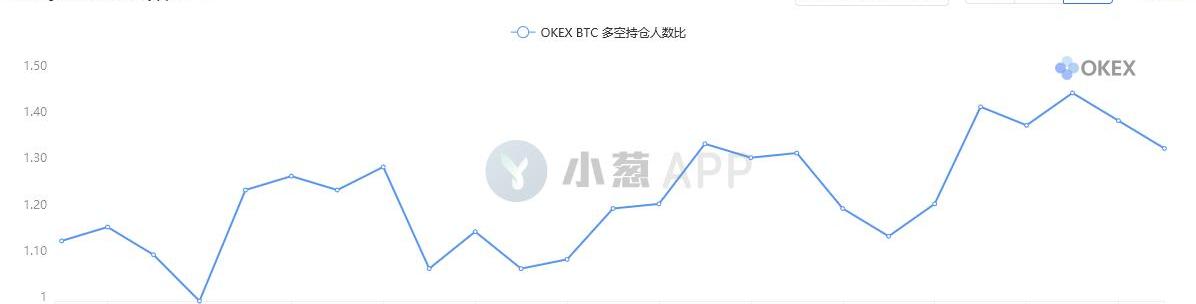 OKEx官方数据显示,该交易所比特币合约投资者的多空持仓比数据在上周曾经出现了一波快速回落,不过在上周末期间这一比值重新反弹并一度冲高至1.40上方,从这一比值的变化趋势上来看,该数值与比特币行情的联动性非常明显,上周后半段的一波快速反弹带动市场做多人数比例大幅增加,不过随着昨日盘中一波急跌跳水走出,目前多单占比正在迅速回落。这种与市场联动性较强或者说存在一定滞后性的数据显示多数投资者仍在被动跟随市场调整仓位,因为短期来看这类数据的前瞻意义不高。