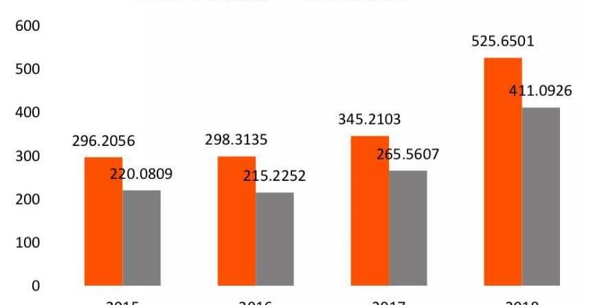 图2广州开发区2015-2018年地方可支配财力及财政支出情况