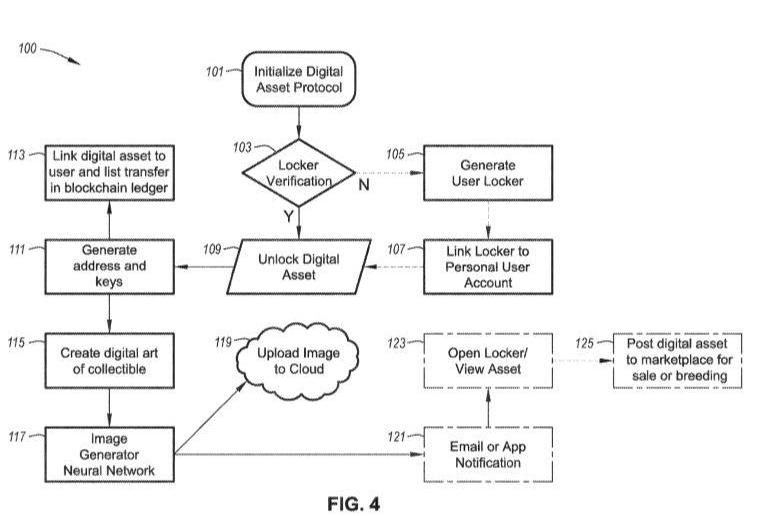 该专利介绍了用于鞋类产品的加密数字资产,制造、使用这种加密数字资产的方法,以及使用区块链控制逻辑的分散计算系统,用于挖掘、混合和交换支持区块链的数字鞋。