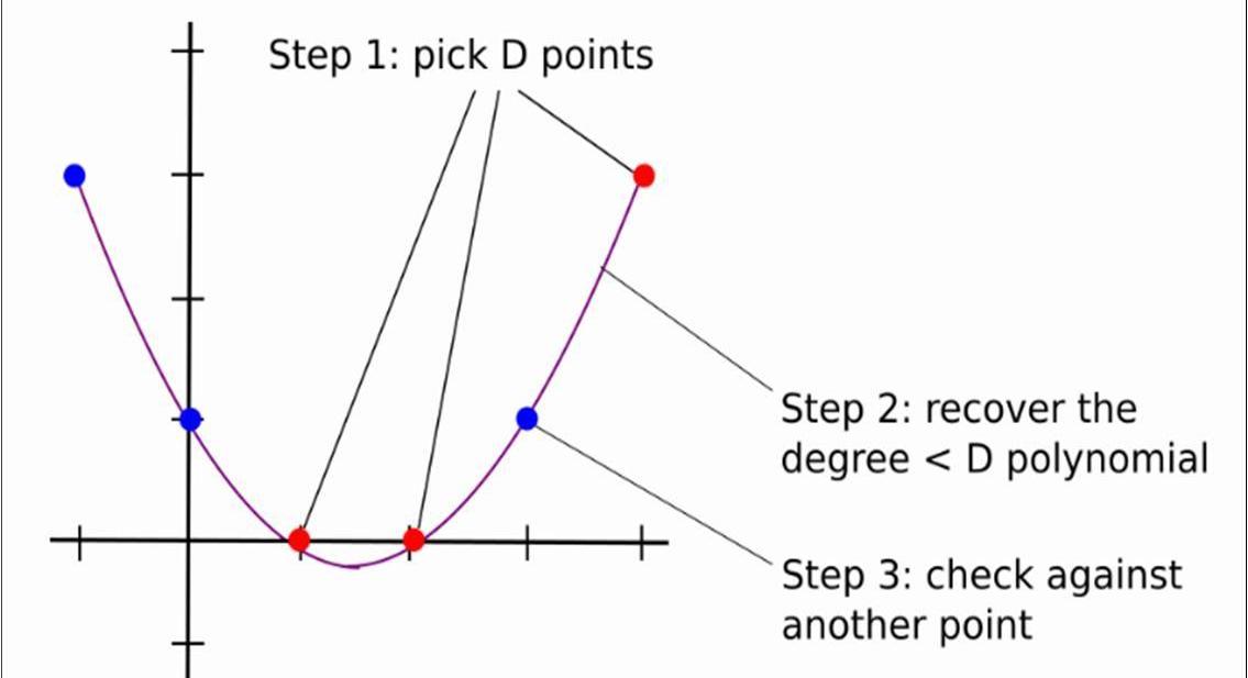至此,问题就转化成了,Alice宣称“多项式等式在变量x取值范围内成立”的问题。那么验证者Bob该如何验证呢?具体过程如下: