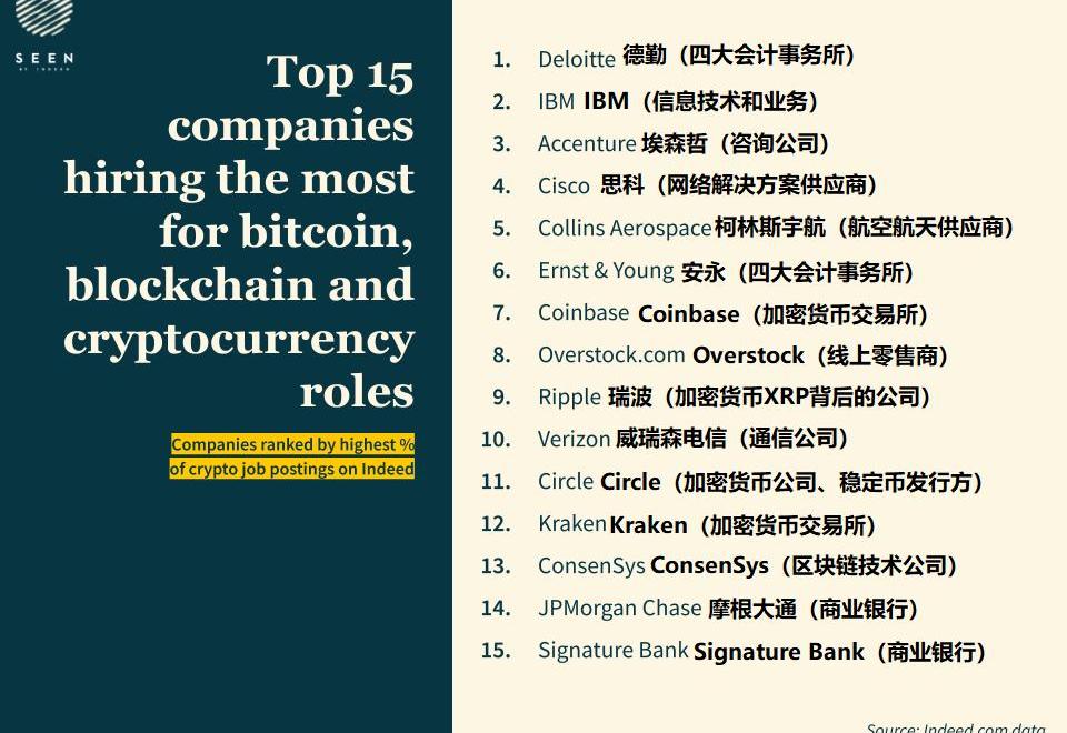 哪些公司在招加密货币、区块链和比特币相关人才?