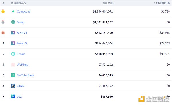 DeFi借贷平台借款占比,金色财经制图, 数据来源:Debank