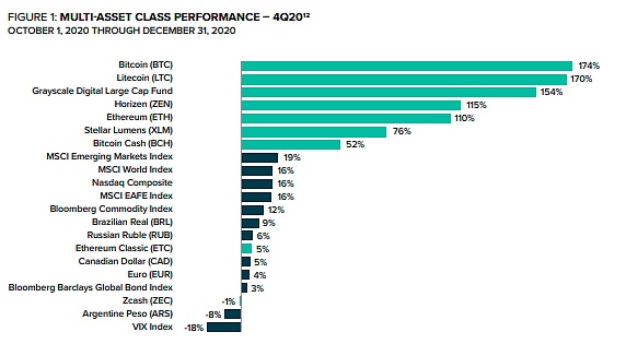 在第四季度,即使考虑到费用、开支和其他与基金相关的成本,Grayscale的大多数产品都显著优于主要指数。