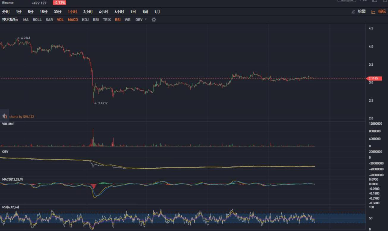 EOS继续在3.1美元附近小幅震荡,短时联动大盘为主。