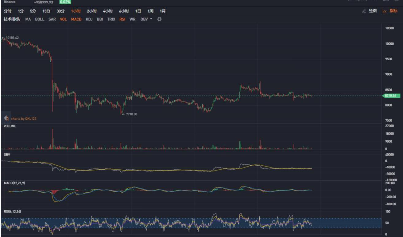 近几日,BTC的振幅和量能趋于萎缩,多空胶着,目前又回到8300美元附近小幅震荡,短时变盘的可能性增加。