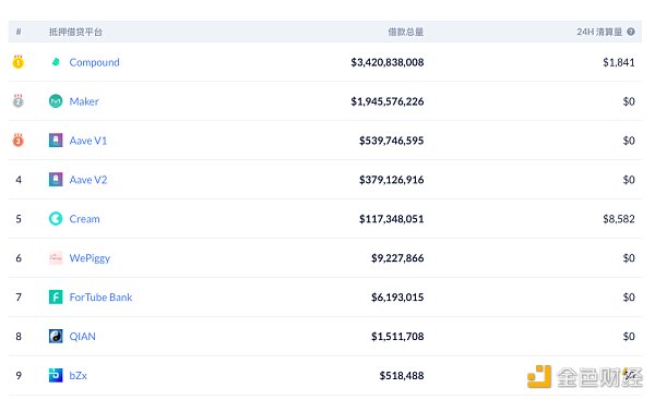 DeFi借贷平台借款占比,金色财经制图, 数据来源:Debank