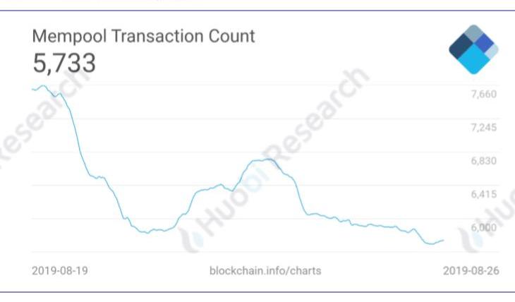 本周比特币平均未确认交易数下降24.76%,以太坊平均未确认交易数上升36.37%。截止8月25日,比特币7天平均未确认交易数为5733,环比下降24.76%。以太坊7天未确认交易数平均为47636.96,环比上升36.37%,其中最低值为28578笔,最高值则达到73109笔。