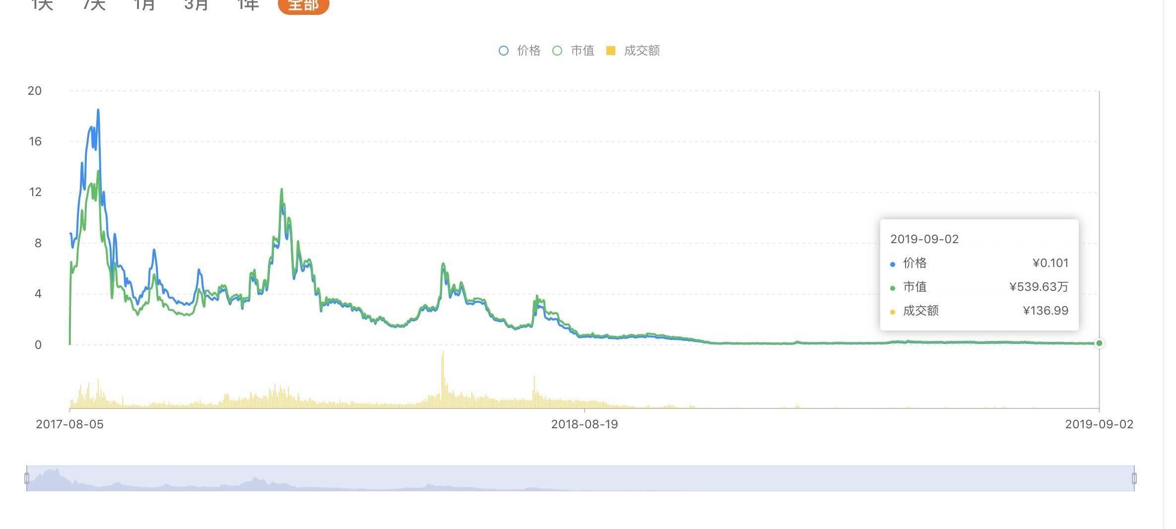 (“拳王币”从代言时最高18.51元人民币一路下跌,当前市场价约为0.1元,跌幅达到99.46%,更惨的是,目前该币种的日交易量已不足1万人民币,具有被交易所下架的风险)