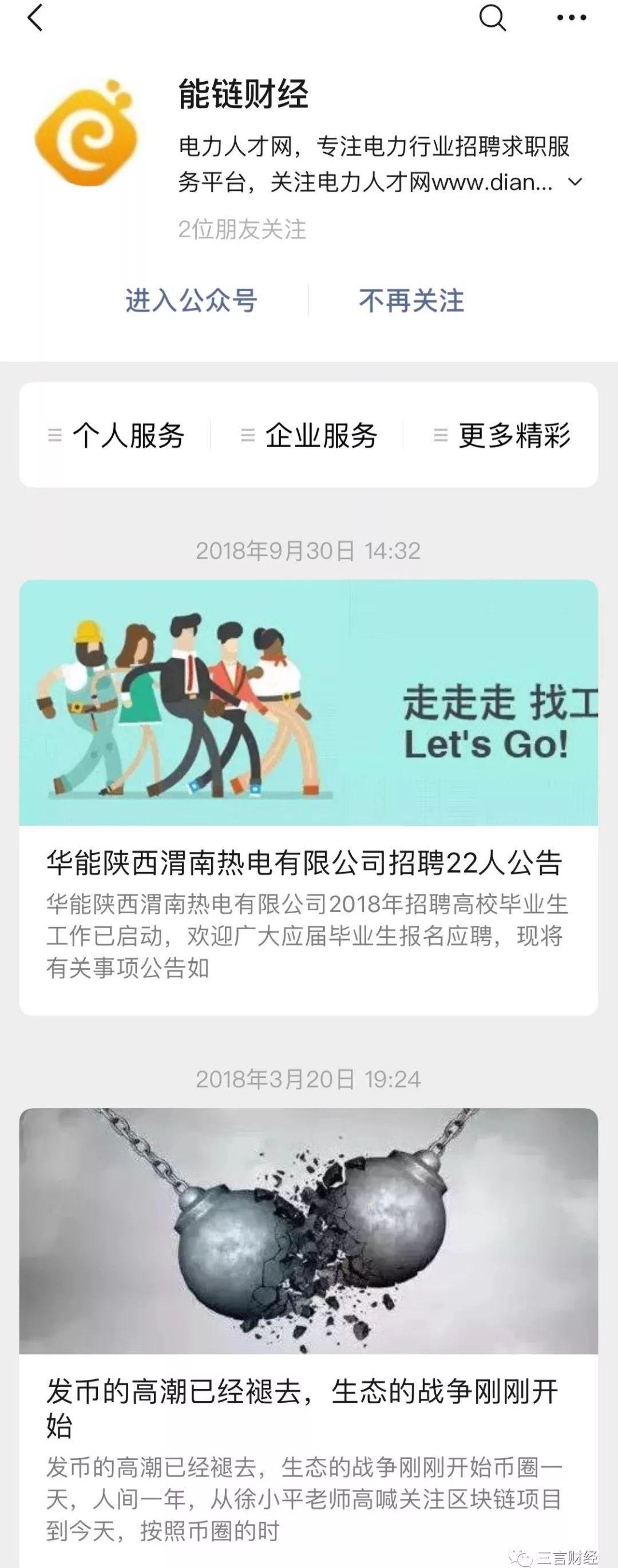 有些区块链媒体则干脆“卖身”。例如能链财经,现在该媒体描述已经变成了“电力人才网”,于2018年9月停止更新。