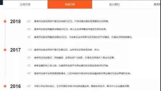 壹诺网站对其产品的发展介绍停止在去年8月份。易见股份上半年披露的2018年年报中透露,易见以供应链管理为基础,以商业保理为补充,大力发展供应链金融服务业务。但在回复交易所问询时却表示,区块链并未对业绩产生显著影响,并提醒投资者要注意风险。