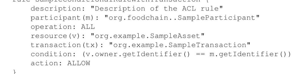 通过访问以下链接,可以获得有关HyperledgerComposer访问控制语言的更多信息:
