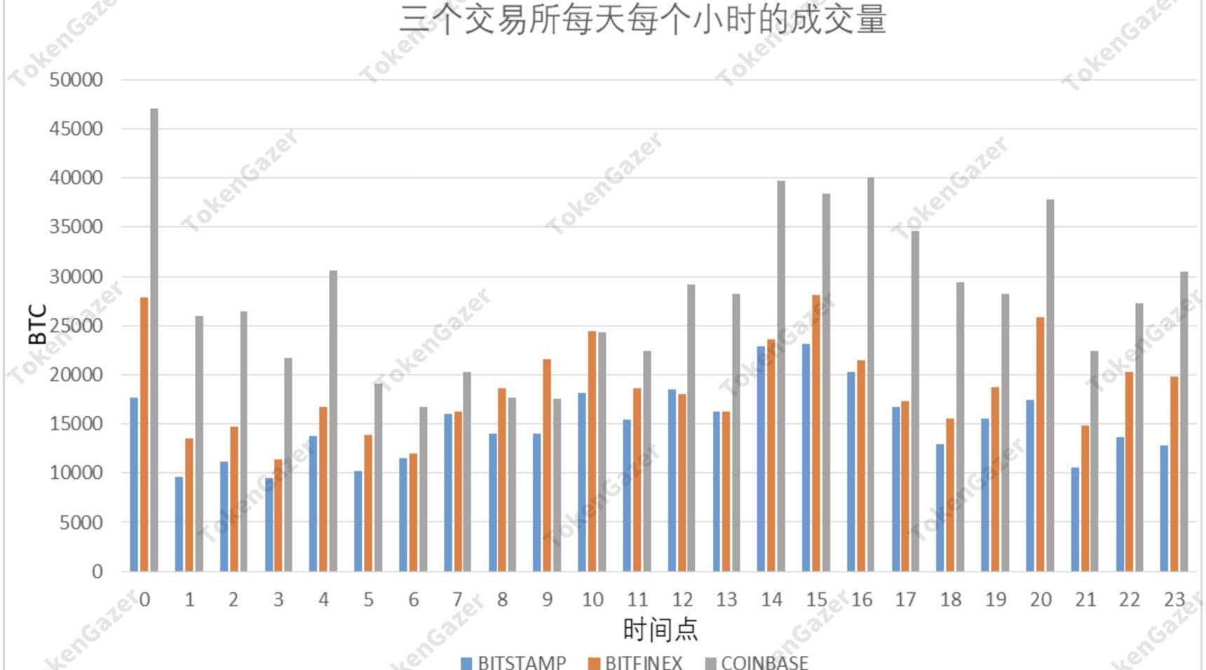 在TokenGazer做每日市场观察的过程中就发现,这个月Bitstamp更倾向于买入;Bitfinex更倾向于卖出;Coinbase的买入、卖出情况和价格的走势很接近,价格上涨时往往买入较多,价格下跌时卖出较多。