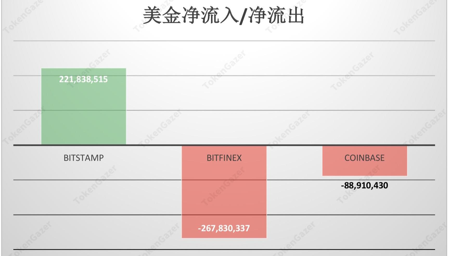 整个7月,Bitfinex和Coinbase呈现出净流出的状况,而Bitstamp则仍旧表现为净流入。