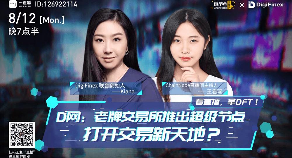 加密交易所赛道百花齐放,厮杀不断,有一家交易所却在成立不到2年的时间里,成功穿越2018年的熊市,以黑马之姿杀入到交易所的第一梯队。它就是DigiFinex,也是很多朋友所熟知的D网。8月12日晚,DigiFinex联合创始人、前百度技术部门副总裁Kiana做客ChainNode直播间,与主持人君瑶一起,大话D网的狂奔突围之路,分享“超级节点计划”如何让用户“躺着赚钱”。