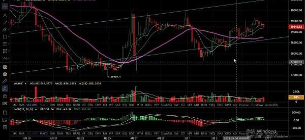 大饼昨日晚间再次走出回踩最低跌至28818一线支撑反弹,随后行情一路上行最高触及29820一线受阻回落,恭喜跟上昨日思路的朋友多单获利1000点,目前币价在29250附近运行,四小时级别行情整体呈震荡上行走势,反弹未破前高,k线由阳转阴形成长上影,可见上方阻力较强,短期多头减弱走出回落至ma17均线支撑,下方关注先29100能否企稳,若破位关注28800一线,日线级别k线收阳,macd空头转多但量能不足双线粘合,盘面整体走势依旧是震荡,上方30000阻力较强未破前可高空,下方28700属于短期强支撑不破可多,晚间操作建议以短线为主方向不明,上方压制29500-30000,下方支撑29000-28700
