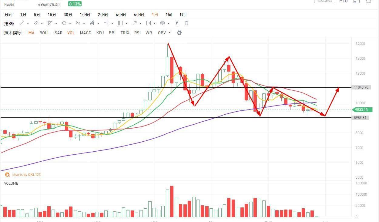 昨日BTC收出一根十字星,这一点恐怕是不符合大多数人的预期的,按照以往的走势,听证会之后,USDT的价格会出现剧烈波动,从而促使资金进入BTC等主流品种中避险,但是这一次并没有出现类似的走势,很多提前潜伏的人恐怕要失望离场了,目前该标的并没有成功站回5天线,一直在沿5天线下跌,并且下跌的成交量略有放大,所以指标几乎都对空头有利,个人认为要想再度走强还需要一定的时间,还有反复震荡的需求,等待地量之后的方向选择,个人倾向于在9000美元处止跌企稳形成一个双底结构,或者直接上去突破10200美元处的压力,则可继续看涨至11000美元的压力位附近,还是要做好防守,若跌破9000美元的支撑,则需离场观望。