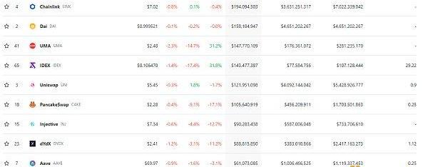 DeFi总市值及前十代币数据来源:coingecko
