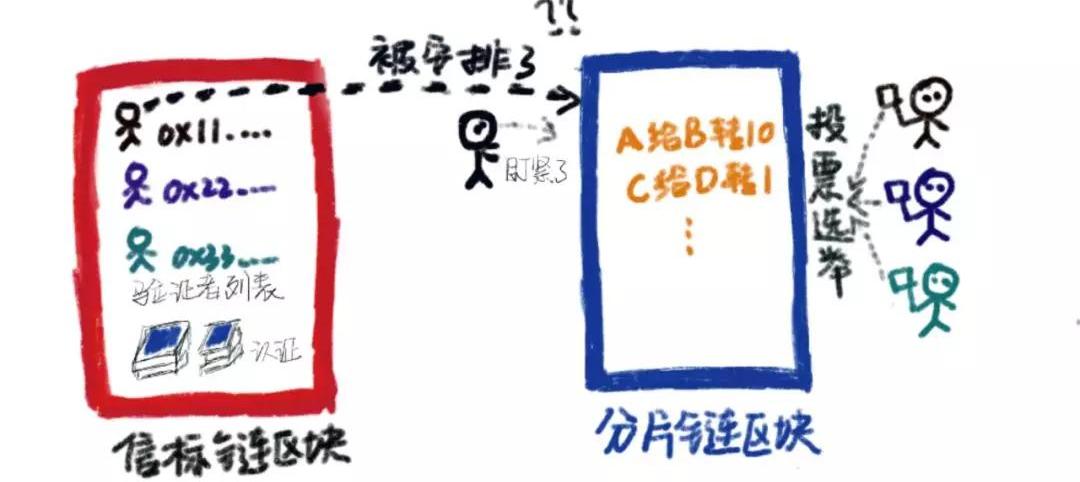 分片链之所以能解决性能问题,它相当于是通过多片技术处理交易等,提高了系统的效率和性能,下图展示的是信标链和分片链的结构图,其中信标链处于协调层,负责协调和管理工作,而分片链处于数据层,负责数据部分的工作。????????