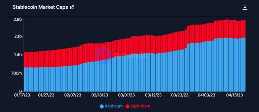 Arbitrum的稳定币流动性增长了27%,而Optimism的流动性今年至今减少了6%。