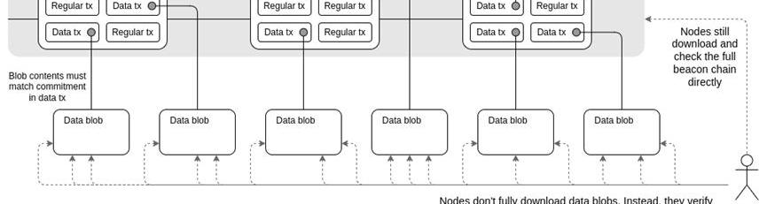 随着danksharding的空间增加,“blob-carryingtransactions”的空间也会增加,它是一种新的交易类型,在信标链节点中保留数周或数月的有限时间。在此期间,节点验证器采用一种称为“数据可用性抽样”的巧妙技术,该技术可以随机抽样数据blob的某些部分以进行验证,而无需实际下载所有数据。