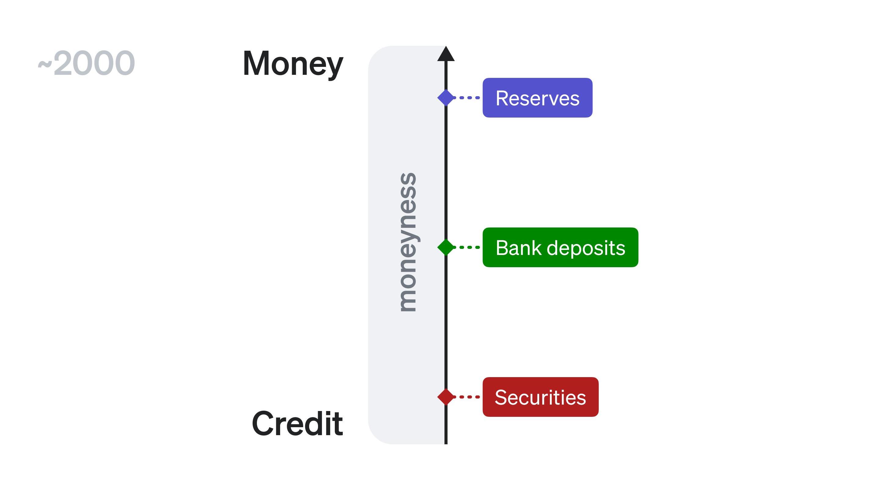 在层次结构中,还有一些基于信用的货币形式低于存款,如证券,它是一种更加衰减的承诺,是层次结构中更高阶的货币形式。某些类型的证券构成了影子银行部门的基础。