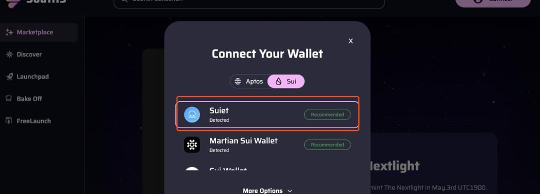 点击官网链接:https://souffl3.com/点击「Connect」链接钱包后,即可参与平台的Launchpad、NFT的买卖。