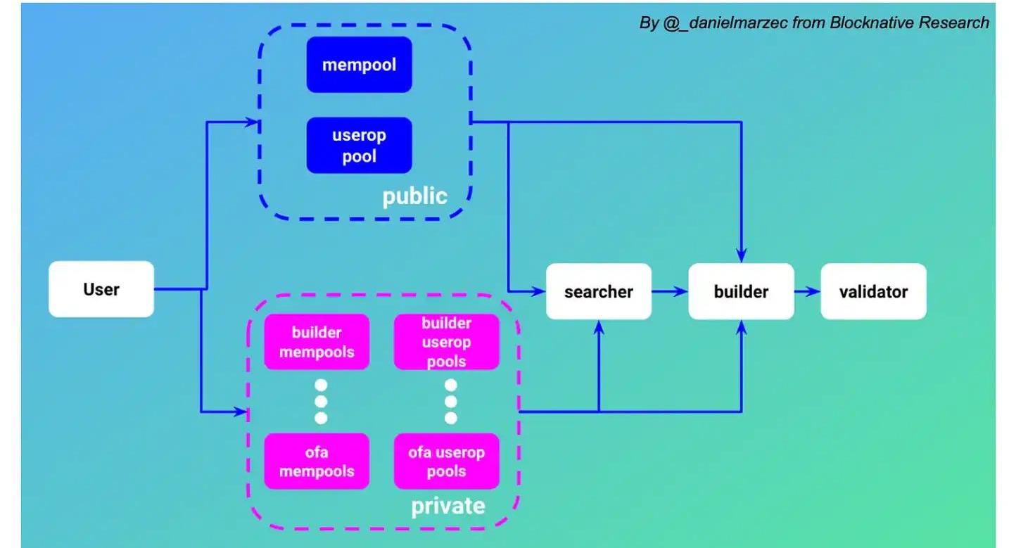此外,值得提一提「沉睡的巨龙」Metamask,根据一些研究,它约占ETH交易的70%。想象一下,Metamask本身成为一个构建器网络,通过创建自己的私有内存池来提取和共享MEV,会涉及中心化吧?