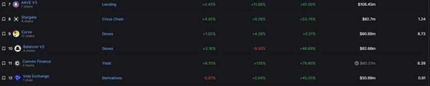 如果你看到一个月的TVL增长,如$VELA,而它低于1(0.91),这意味着可能仍有收益。