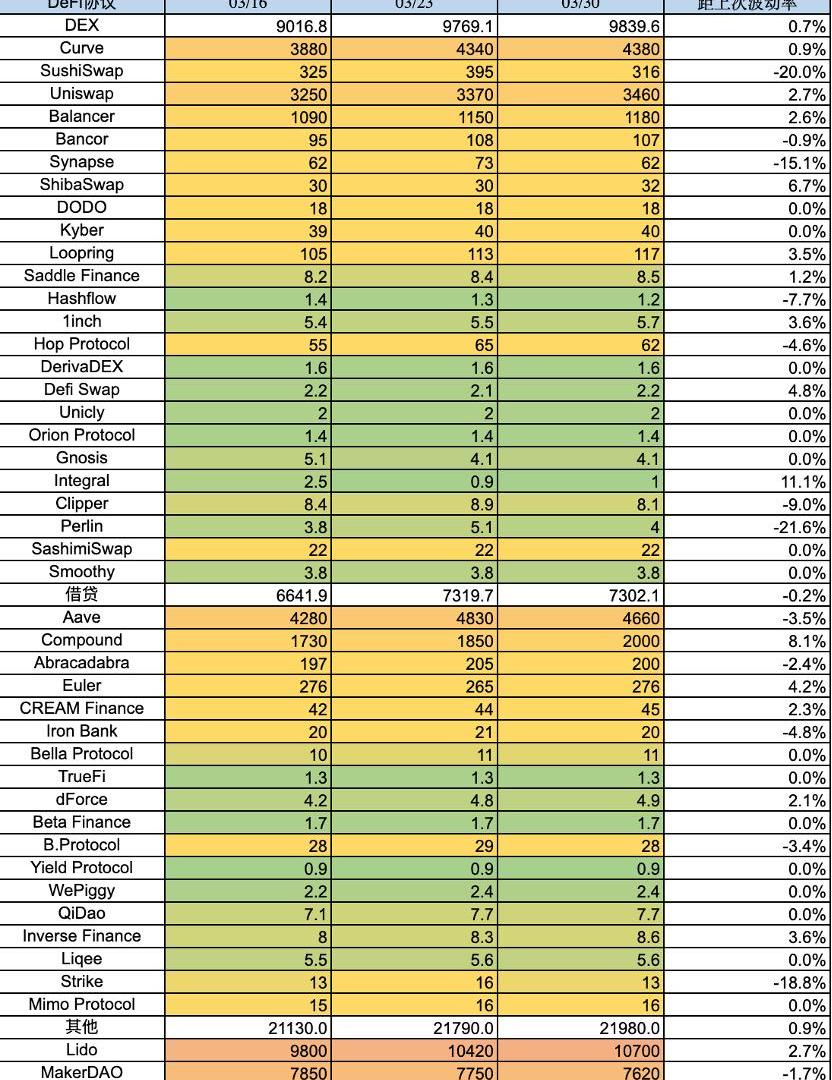 当前链上转账费用约为9.81,Opensea的交易费用约为$3.81。可以从本周gas走势上看出打破了之前市场缺乏热点,gas处于底部区间的阶段,空投带起的一波热度使市场延续较为强势的状态,从gas消耗看,Uniswap占据头部位置。