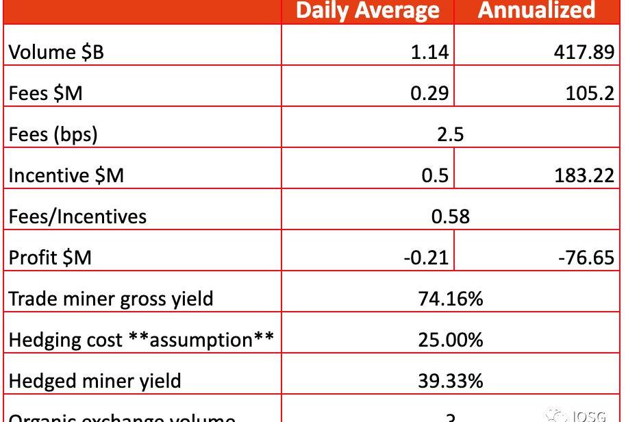 用户在代币推出之前开始挖币;代币相对于平台上的活动由市场定价,因此第一步中的FOMO直接反映在代币FDV上;高代币价格进一步激励更多的交易量生成。因此,dYdX每天创造数十亿美元的交易量。然而,这种可持续的活动程度有多大,与纯粹的交易挖矿有什么关系?最终,dYdX将耗尽燃料支持交易活动,其成功将完全取决于原生需求。