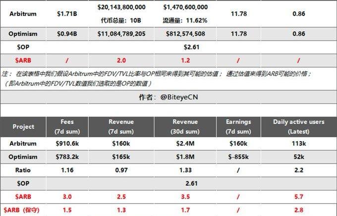下图先放个总结表格,本Thread将从以下几个维度进行对比来尝试判断$ARB什么样的价格是合适的。
