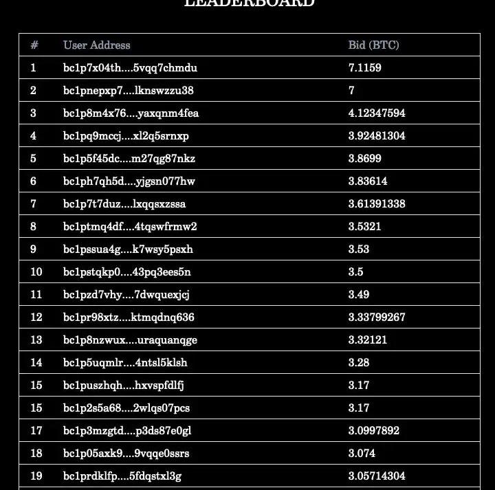 还有人发现,YugaLabs忽略了筛选竞拍地址这样最基本的前置步骤。在竞拍过程中甚至存在与Taproots不兼容的比特币地址,直至拍卖完成后,前288名中仍存在14个不兼容的地址,YugaLabs从始至终都没有对这些地址做简单的筛选。据悉,成功的竞标者将在一周内收到铭文,而不兼容的成功地址却收不到铭文,这14个NFT的处理方式,官方目前还没有给出回应和方案。不少人认为Yuga在比特币网络上发布NFT却没有与比特币开发者合作,从一定程度反映出了YugaLabs对此次拍卖的准备不到位、技术不专业和态度不端正。