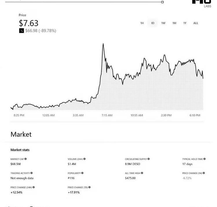 自2021年6月首次发布以来,DESO的价格经历了大幅波动。该代币在发行时的价值超过178美元。