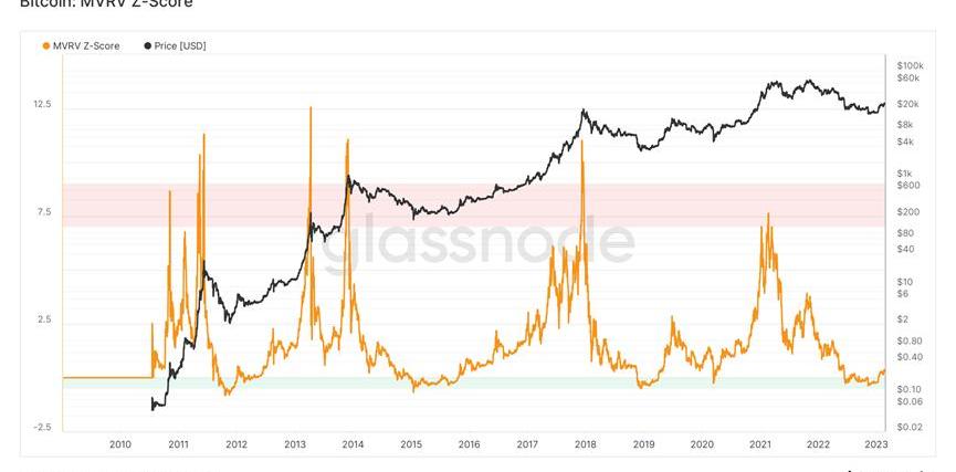 长期趋势指标MVRV-ZScore以市场总成本作为依据,反映市场总体盈利状态。当指标大于6时,是顶部区间;当指标小于2时,是底部区间。MVRV跌破关键水平1,持有者总体上处于亏损状态。当前指标为0.32,脱离了绿色抄底区间。