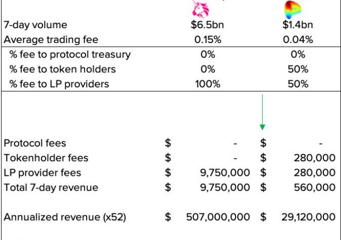 图:Uniswap和Curve的费用明细表