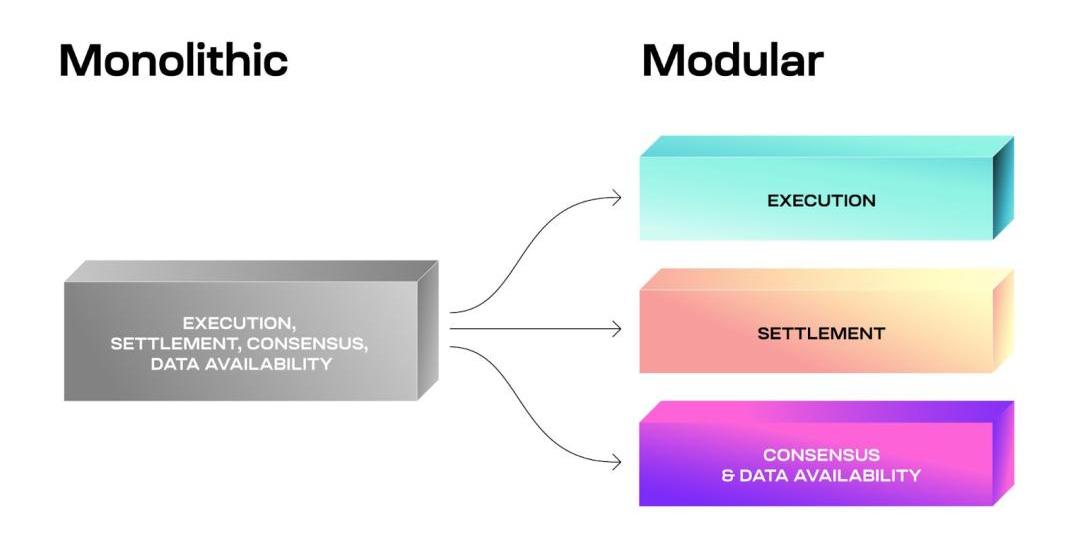 Celestia是一条Layer1的模块化区块链,不同于单链区块链,模块化区块链不会在一条单链上解决所有层的问题。