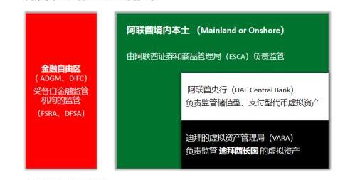 除了负责阿联酋境内本土以及两个金融自由区的监管机构以外,阿联酋的40多个经济自由区可以针对为特定的商业活动发放许可证,每个区的自主权不同。同样,阿联酋7个酋长国也可以制定自身的法律来对虚拟资产进行监管,如迪拜酋长国就通过了有关虚拟资产监管的法律,并设立了虚拟资产监管局对迪拜酋长国司法辖区内的虚拟资产及活动进行监管。
