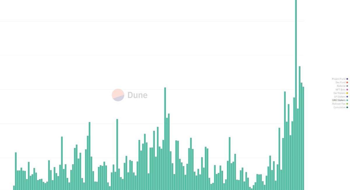 没错,$GMX质押者的收入大约是$GNS质押者的10到20倍。