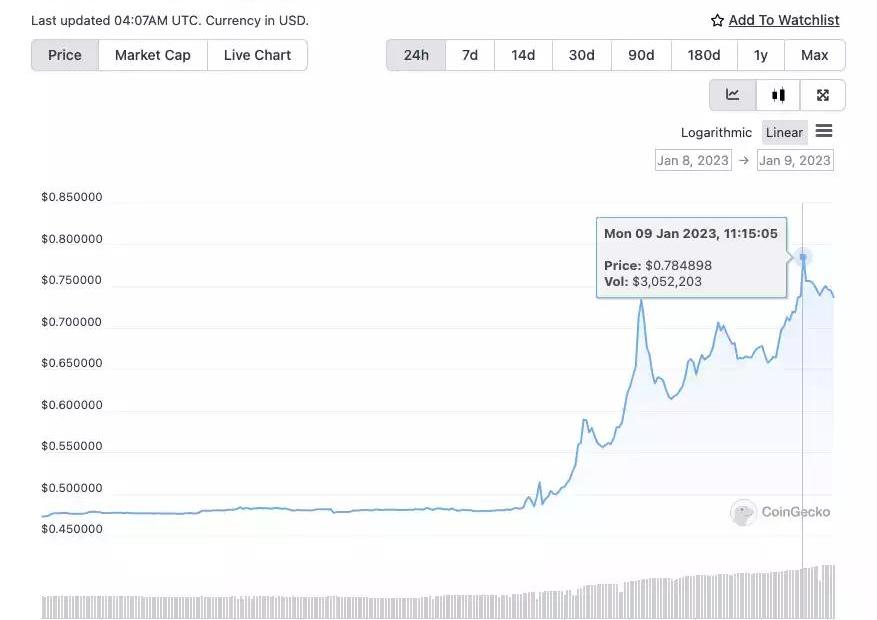 上周被社群挖掘出的小众项目Stader因即将上线原生TokenSD质押、承接抛压较小、市值较小而被认为具有较大潜力。SD也借势呈现出显著涨幅,根据CoinGecko最据显示,SD过去24小时之内一度涨至0.784898美元,距低点0.47美元涨幅达67%。