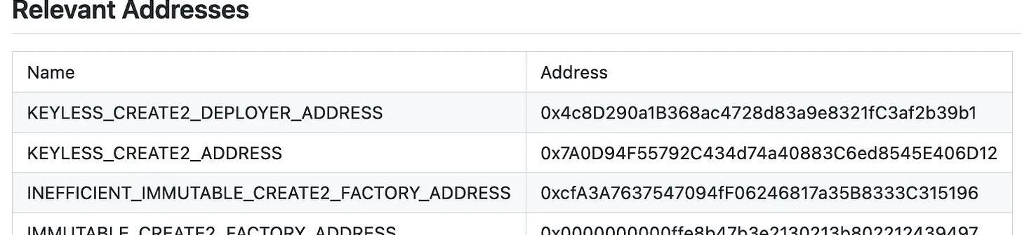 精明的读者可能已经注意到,CREATE2Factory在所有链上都已经存在于0x0000000000FFe8B47B3e2130213B802212439497。这有点像鸡生蛋还是蛋生鸡的问题,一致的地址部署如何依赖于一致的地址部署?