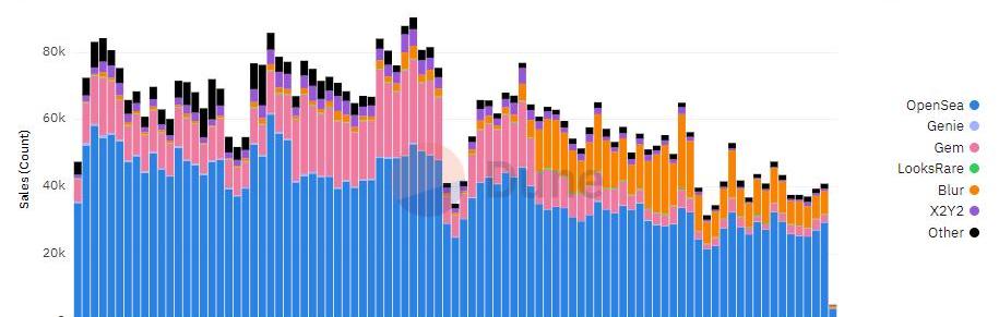 虽然Gem和Genie上的交易量有所减少,但另一个聚合器Blur上的交易量却出现了回升。现在判断Blur是否开创了成功的聚合器模式还为时过早。
