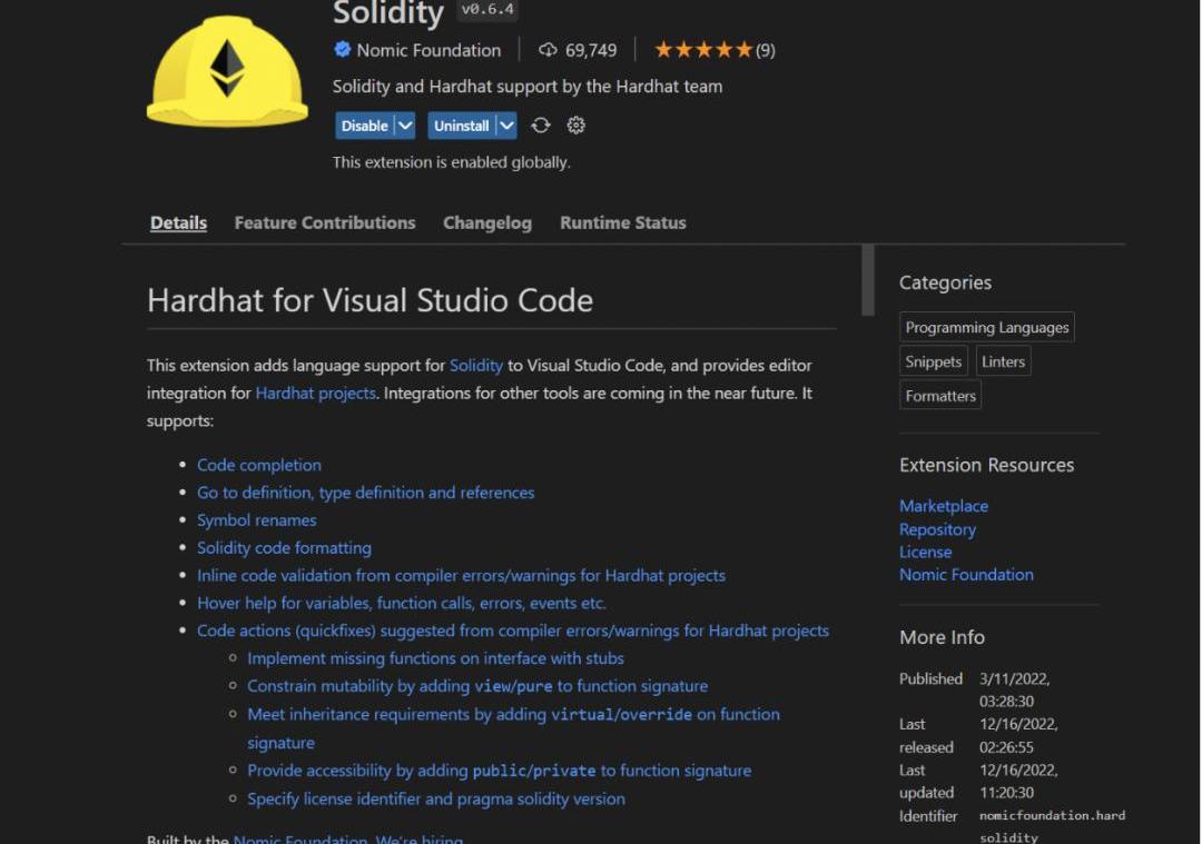 读者可以选择自己喜欢的任何一种代码编辑工具来编写代码,但我们推荐使用VisualStudioCode,因为Hardhat的开发者NomicFoundation为VisualStudioCode开发了一款Solidity插件,可以帮助提升Solidity和Hardhat开发效率。
