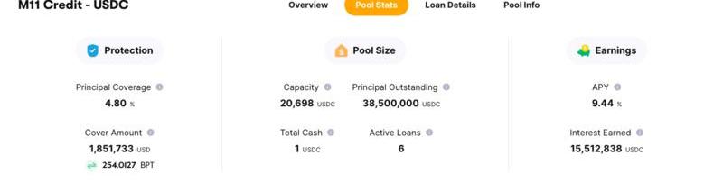 智能合约审计平台Sherlock也披露称,其在?M11?Credit作为代理人的USDC池中存有500万美元,或因借款人违约损失约400万美元。
