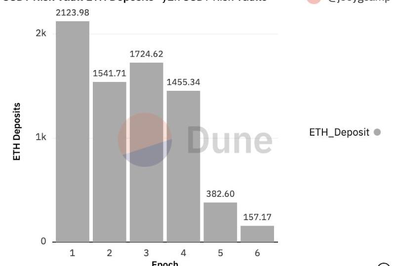 一个伟大的产品:针对脱钩风险的保险,具有透明的市场定价,以及对黑天鹅脱钩事件的简单保险能力。听起来很好,对吗?好吧,让我们看看自五周前以来该USDT金库的存款情况: