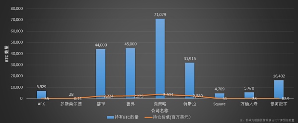 MicroStrategy于2020年8月首次公开宣称将把比特币作为该公司的主要财政储备资产,在8-9月分别两次共投资了4.25亿美元买入38,250 BTC。此后,MicroStrategy一直在稳步增加比特币,截至2021年2月22日,该公司共持有71,079枚比特币,当前持仓价值约为39.92亿美元,是全球持有比特币数量最多的上市公司。