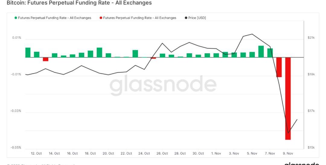 期货资金费率:本周市场更多转向看空,BTC费率-0.1%,个别品种FTT、SOL甚至出现-2.5%费率极值。费率0.05-0.1%,多头杠杆较多,是市场短期顶部;费率-0.1-0%,空头杠杆较多,是市场短期底部。