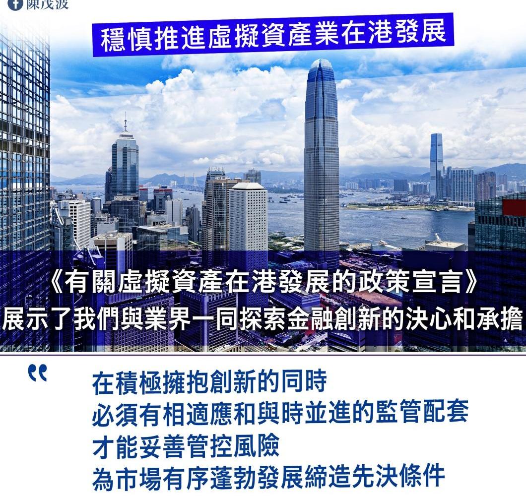 特区政府在上月底发表了《有关虚拟资产在港发展的政策宣言》,阐明了我们对虚拟资产行业、相关创新技术与应用,和其生态系统发展的愿景和方针,并力求透过便利行业创新的政策、整全和平衡的监管框架、「风险为本」的监管方向,为行业缔造稳健有利的发展条件,并务实地提出多项试验计划,以测试并提升相关技术水平和应用性。